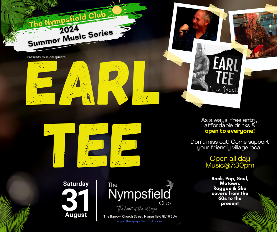 Back again to Nympsfield by popular demand, Earl Tee brings a mix of hits from Rock and Pop, to Ska, Motown and Reggae.